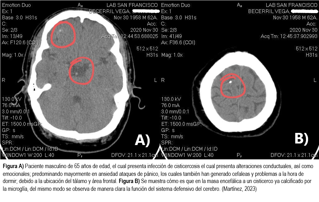 - Inflamación cerebral: La presencia de tales parásitos en el cerebro puede desencadenar una reacción inflamatoria local. Ya que el sistema inmunológico (microglía) responde a la presencia de estos parásitos. La inflamación puede contribuir a los síntomas neurológicos y las complicaciones asociadas con la neurocisticercosis.