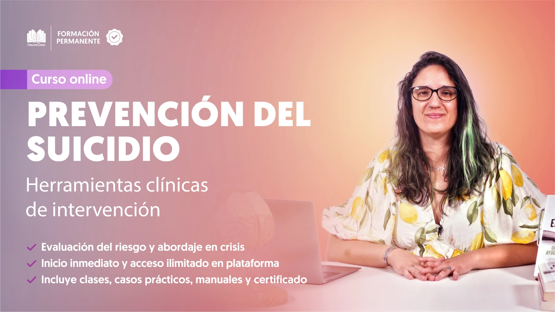 - Una formación integral y basada en evidencia para fortalecer tus competencias profesionales, brindar acompañamiento seguro y reducir el riesgo suicida en distintos contextos.